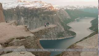 Three friends on the Trolltunga. Norway, sunset